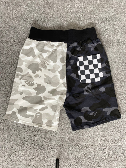 Stoc epuizatBAPE Black/White Split Camo Shorts