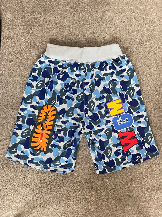 Stoc epuizatBAPE Blue Fire Camo Shorts