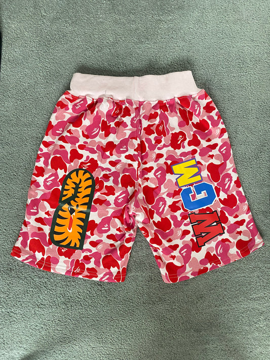 Stoc epuizatBAPE Pink Fire Camo Shorts