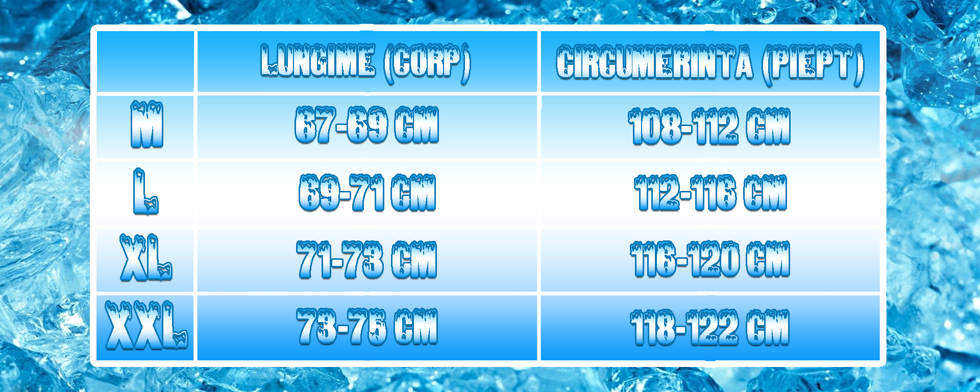 Tabel de marimi pentru hanorac